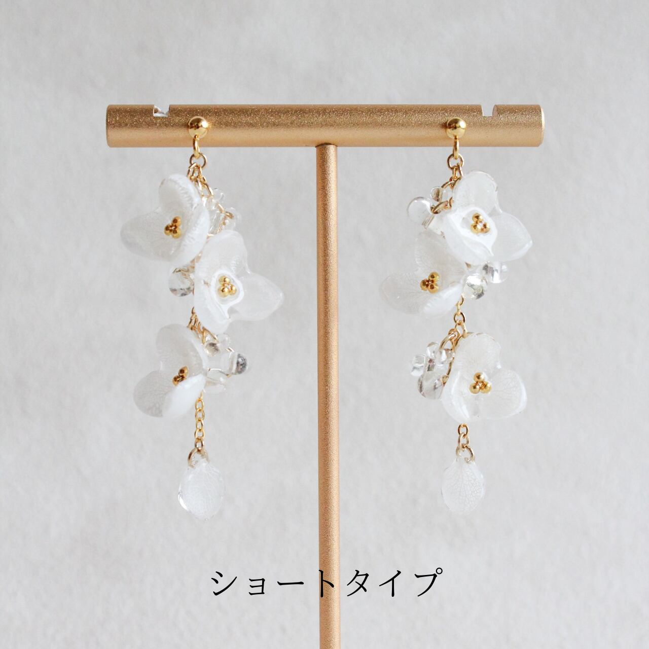 本物のアナベルのホワイトフラワーロングピアスイヤリング 普段使いやブライダル、結婚式お呼ばれにおすすめ