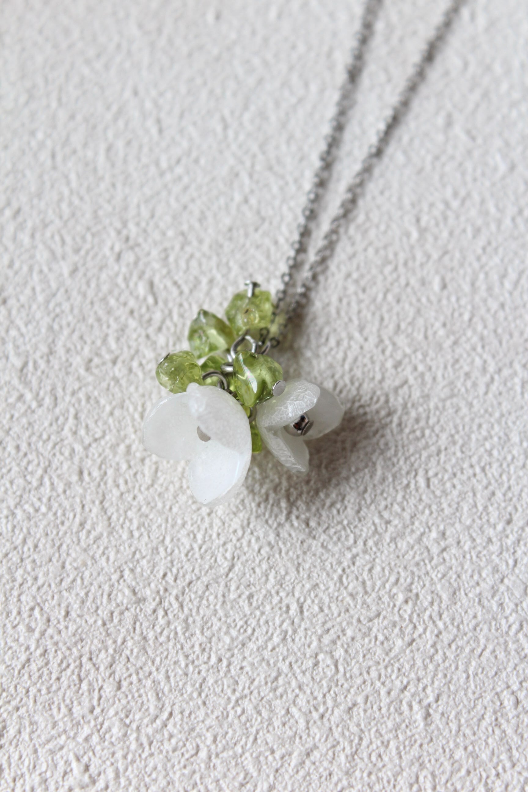 Y様専用 天然石ペリドット使用 本物のアナベルのロングイヤリング、ネックレス、ヘアクリップ