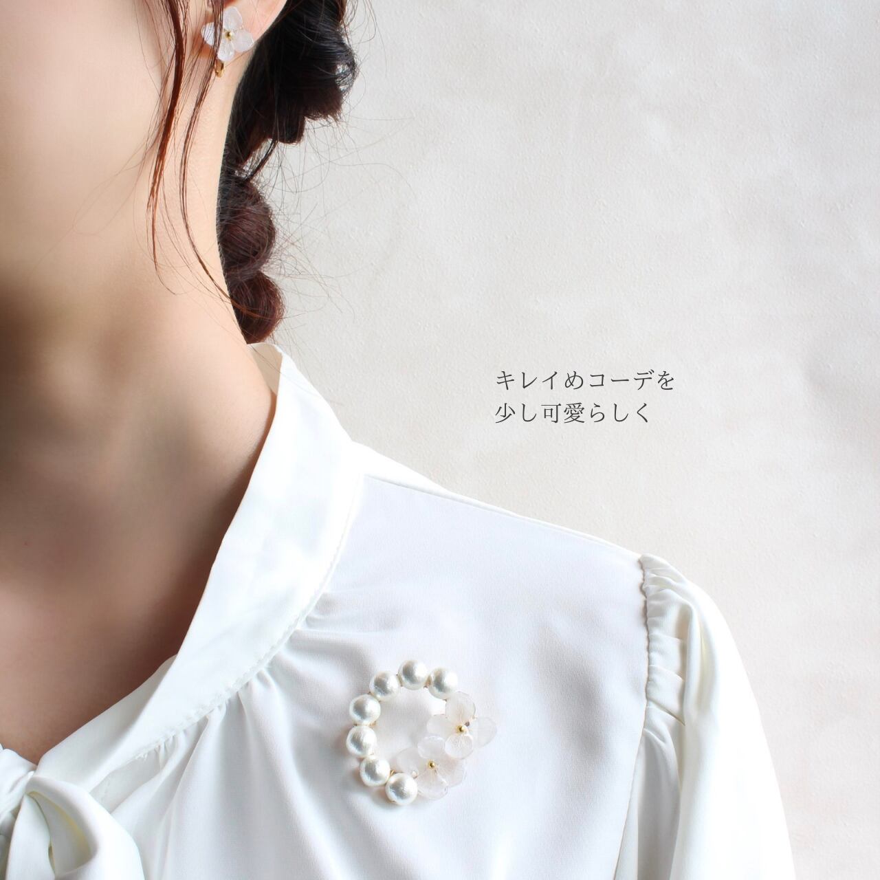ホワイトフラワーコットンパールブローチ