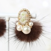 ブラウンのミンクファーのフラワーピアスです